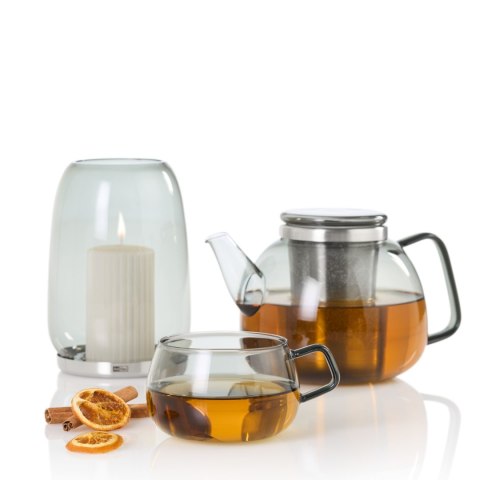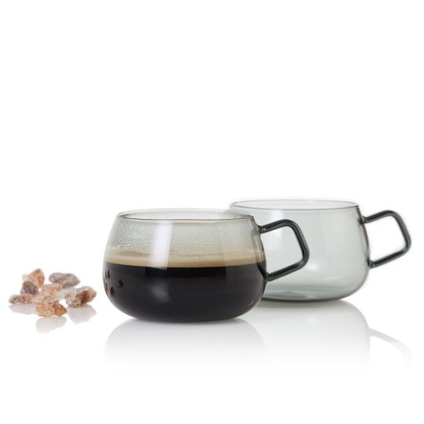 Każdy egzemplarz filiżanki Yuna jest wyjątkowy, ponieważ został wykonany z odpornego na gorąco, dmuchanego szkła borokrzemowego. Gładka powierzchnia szkła brokrzmowego nie wchodzi w reakcję z zawartością filiżanki co oznacza, że nie przechodzi smakiem ani zapachem. Jest to całkowicie neutralny materiał. Filiżanki Yuna nawiązują, swoim kształtem i przydymionym kolorem do innych przedmiotów z linii Yuna, w której można znaleźć imbryk, cukiernicę z mlecznikiem czy lampiony. Skandynawski charakter i zaokrąglony kształt filiżanek sprawia, że wygodnie spoczywają w dłoni, a ich 400 mililitrowa pojemność pomieści herbatę, kawę, desery, a nawet zupę. Produkt został zaprojektowany przez Rolanda Kreitera. Można myć w zmywarce. Przybliżone wymiary pojedynczej filiżanki: wysokość - 6,5cm, średnica bez ucha - 10cm, średnica z uchem - 12,5cm, pojemność - 400ml. Przybliżone wymiary brutto: wysokość - 13,5cm, długość - 25,5cm, szerokość -14cm. Przybliżona waga brutto: 0,399kg. Opakowanie: kartonowe pudełko prezentowe.