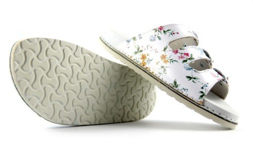 ABAT ROZM. 39 W KWIATY Klapki damskie, trzy paski regulowane sprzączkami