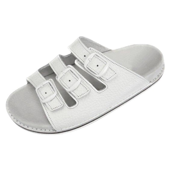 ABAT ROZM. 40 BIAŁE Klapki damskie ortopedyczne, trzy paski, skóra naturalna