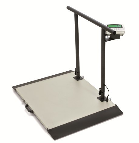 Waga wyposażona w barierkę składaną i uchwytem na wyświetlacz LCD.