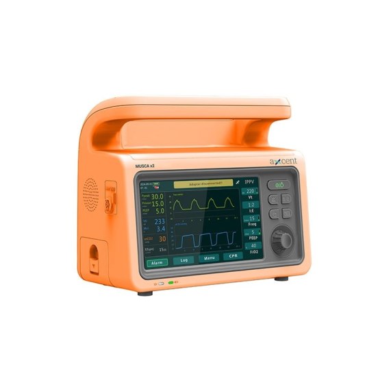Axcent Medical Musca X2 to respirator przenośny z dotykowym ekranem. Respirator odpowiedni do sytuacji awaryjnych i pomocy w sytuacjach kryzysowych, zastosowań w karetkach pogotowia, statkach powietrznych, łodziach, miejscach publicznych, a także do transportu wewnątrz szpitalnego i między-szpitalnego. Cechy: Konstrukcja o wadze 3,4 kg Torba transportowa na stelażu wraz z akcesoriami Kolorowy ekran dotykowy 7 "z funkcją blokady ekranu Krzywe ciśnienia w drogach oddechowych i EtCO2 w czasie rzeczywistym Tryb inteligentnej RKO zgodnie z wytycznymi AHA Zakres stosunku Wd: Wy: 1: 9 do 9: 1 Zakres objętości oddechowej: od 50 do 2500 ml 9 trybów wentylacji:IPPV,V-AC,V-SIMV,P-AC,P-SIMV,CPAP,PCV,Ręczny,CPR Wewnętrzny zawór PEEP 40% lub 100% dla FiO2 Akumulator litowo-jonowy z 6-godzinnym czasem pracy Opcjonalny analizator EtCO2 Mainstream Alarm dźwiękowy i wizualny dla wielu parametrów Wodoodporność IPX4