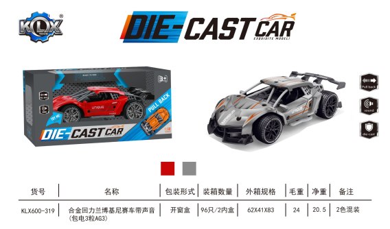 Metalowe autko z napędem Pull back, gumowymi oponami i efektami dźwiękowymi to propozycja dla dzieci od 3-go roku życia. Pojazd wykonany został z dbałością o detale z najlepszej jakości materiałów. Metalowa konstrukcja zapewnia wytrzymałość i solidność. Wystarczy pchnąć samochodzik do tyłu, a pomknie szybko do przodu, wydając przy tym odgłosy odpalania silnika i jazdy sportowego samochodu. Zabawka zasilana jest bateriami typu 3 x AG3, baterie znajdują się w zestawie.