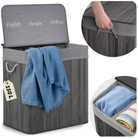 Bambusowy kosz na pranie bieliznę z pokrywą 150 l Massido
