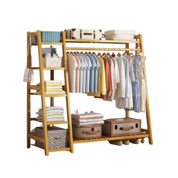 Bambusowy wieszak na ubrania z 5 półkami - długość 130 cm.