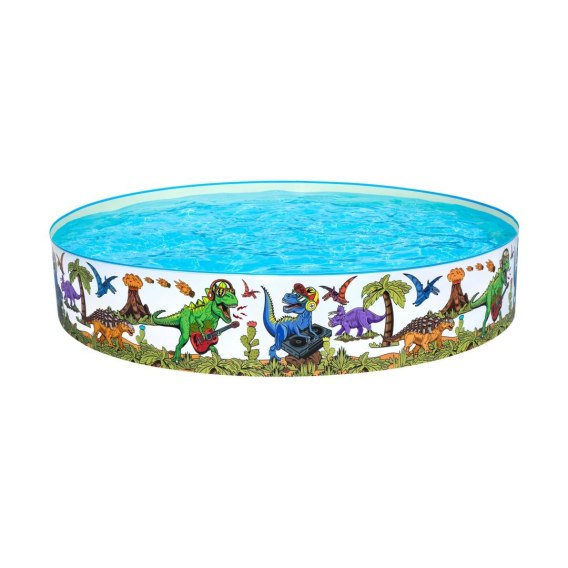 Jestidealnym towarzyszem na ciepłe letnie dni. Zapewnia wystarczająco dużo miejsca na wiele godzin kąpieli. Żywy design zróżnymi dinozaurami oferuje dzieciom ekscytującą podróż w przeszłość. Dolna i boczne ścianki wykonane są zwytrzymałego winylu i są ze sobą trwale połączone.