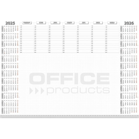 - pod kalendarzem tygodniowym powierzchnia w kratkę przeznaczona na notatki