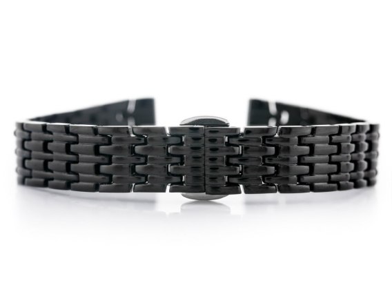 Stalowa bransoletka z zapięciem motylkowym do zegarka wysokiej jakości w kolorze czarnym.