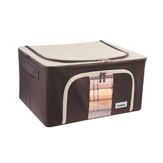 Brązowy organizer Kamai Gio Style to praktyczne i estetyczne rozwiązanie do przechowywania, zaprojektowane z myślą o maksymalnej funkcjonalności i trwałości. Pudełko wykonane jest z wysokiej jakości tkaniny poliestrowej 600d z powłoką PCV, co zapewnia jego solidność i wytrzymałość. Idealne do przechowywania ubrań, pościeli i innych przedmiotów domowego użytku.