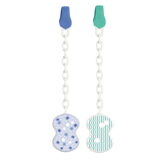 Łańcuszek do smoczka z klipsem oraz miękkim zaczepem jest łatwy do zapięcia na odzieży. Chroni smoczek przed zaginięciem, upadkiem na podłogę i zabrudzeniem. Można go sterylizować zarówno na zimno, jak i na gorąco.