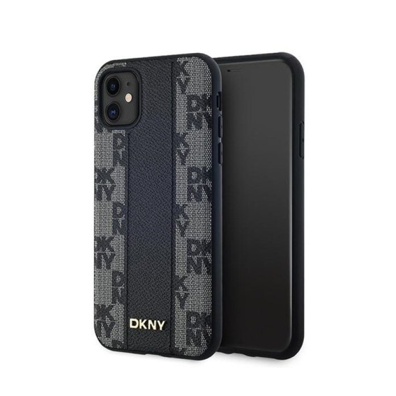 DKNY Leather Checkered Mono Pattern MagSafe - Etui iPhone 11 (czarny)
