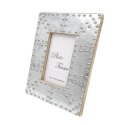 Ramka wykonana z drewna mangowego, inkrustowana metalem. Zdobienia metalowe. Format zdjęcia 15x10cm. Wymiary zewnętrzne: 25 x 20 cm. Wymiary wewnętrzne: 14 x 9 cm.