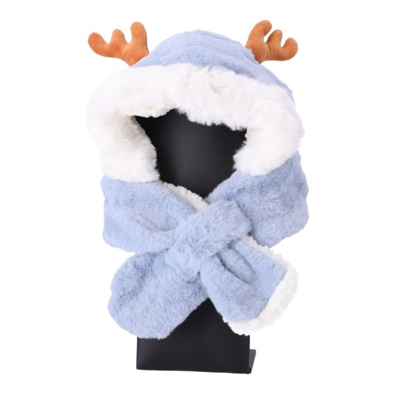 Dziecięca pluszowa czapka z szalikiem dla dzieci w wieku od 1 do 7 lat – jasnoniebieska z uszami jelenia