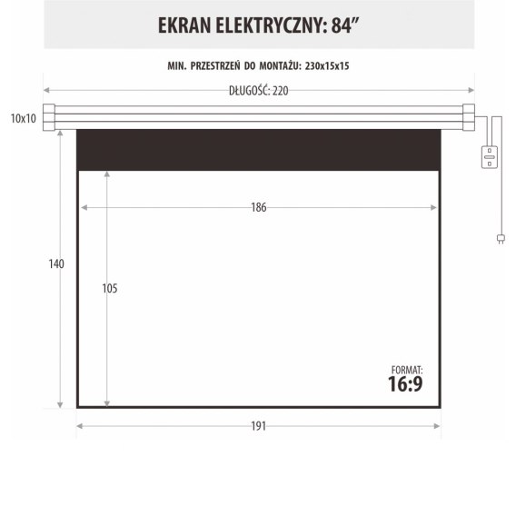 EKRAN ELEKTRYCZNY 84" 186x105cm z pilotem EM-84 16:9E ART PREM