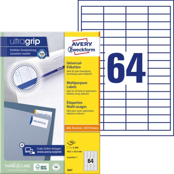 ETYKIETY A4 AVERY 48,5*16,9mm BIAŁE (100)