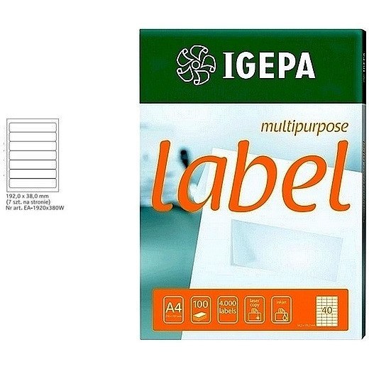 ETYKIETY A4 IGEPA 192*38,0mm BIAŁE (100)