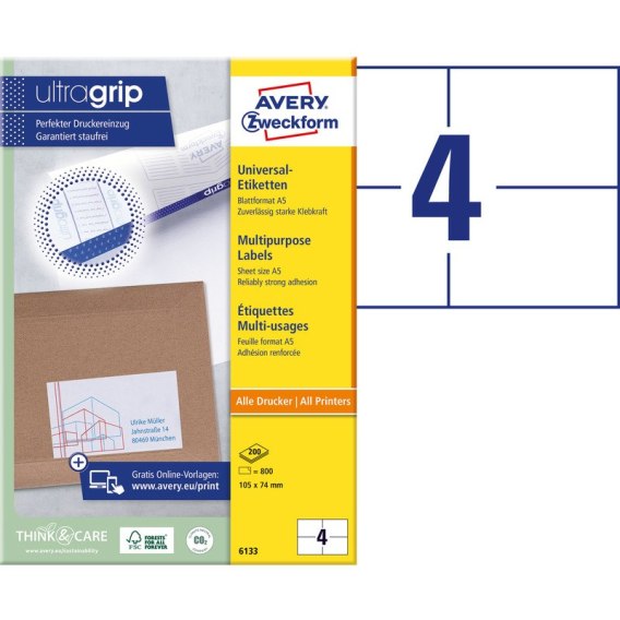 ETYKIETY A5 AVERY 105*74mm BIAŁE (200)