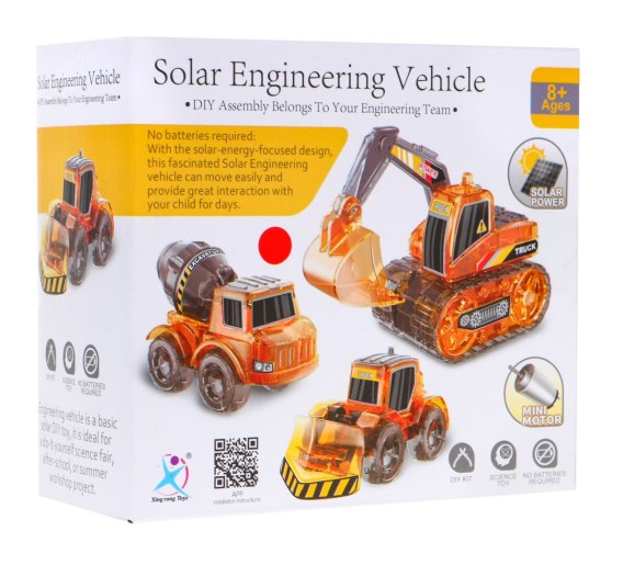 Zestaw solarny 3w1 o tematyce budowlanej to propozycja dla dzieci od 8 - go roku życia. Z tym zestawem można zbudować 3 różne pojazdy budowlane zasilane słońcem. Instrukcja zawiera wskazówki krok po kroku jak skonstruować każdy z pojazdów. Zestaw posiada panel słoneczny, która zbiera energię słoneczną w silnik z napędem elektrycznym, który napędza koła zębate, aby pojazd poruszał się. Zabawka rozwija zdolności manualne, ćwiczy logiczne myślenie, rozwija wyobraźnię. |