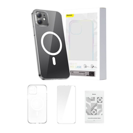 Etui ochronne Baseus Magnetic Crystal Clear do iPhone'a 12 (transparentne) + szkło hartowane + zestaw czyszczący