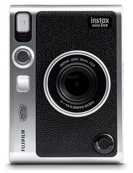 Fujifilm Instax mini Evo. Rozmiar przetwornika obrazu: 1/5", Maksymalna rozdzielczość obrazu: 2560 x 1920 px, Wielkość obrazka: 62 x 46 mm. Zasięg lampy błyskowej: 0,5 - 1,5 m, Tryby lampy błyskowej: Automatyczna, Wyłączenie lampy błyskowej, Wymuszone włączenie. Korekcja naświetlania: ± 2EV (1/3EV step). Typ wyświetlacza: LCD, Długość przekątnej ekranu: 7,62 cm (3"). Obsługiwany typ USB: USB Type-C