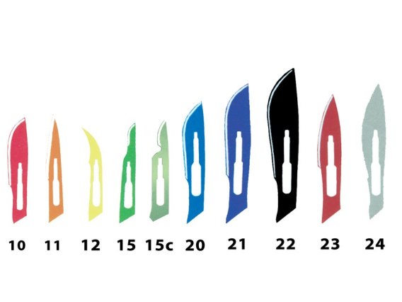 Ostrze chirurgiczne węglowe z końcówką bezpieczeństwa. Każde ostrze jest oznaczone i indywidualnie pakowane w folię aluminiową. Wielkość ostrza jest wyraźnie oznaczona na odwrocie folii oraz poprzez kolor naklejki na pudełkach zbiorczych.Ostrza chronione papierem VCI.W opakowniu 100 szt.