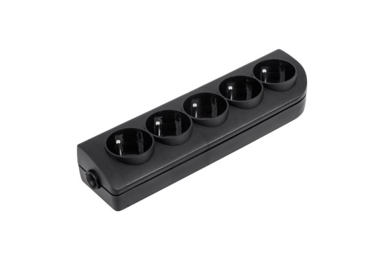 Gniazdo przedłużacza x 5 z uziemieniem czarne GN-50-2