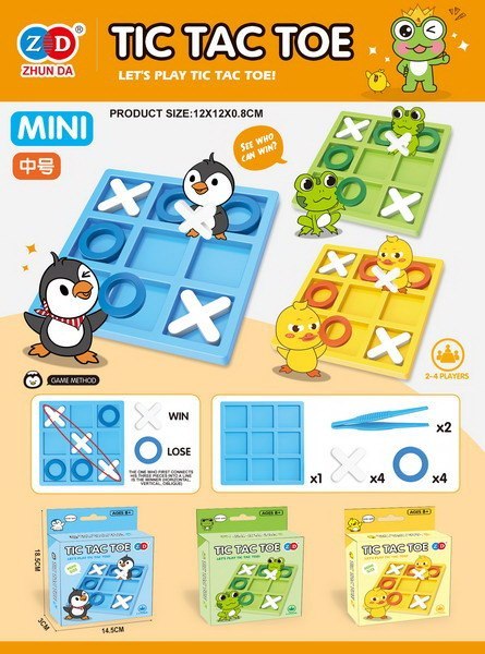 Logiczna gra Kółko i Krzyżyk w wersji kieszonkowej, dla dzieci od 3-go roku życia. Gra przeznaczona jest dla dwóch do czterech graczy. Każdy z graczy otrzymuje po cztery kółka lub krzyżyki. Gra toczy się na planszy podzielonej na 9 pół. Gracze kładą swoje żetony naprzemiennie i starają się ułożyć je w linii prostej, pionowej, poziomej lub na ukos i jednocześnie blokować taki układ przeciwnikowi. Zabronione jest kładzenie swojego żetonu na polu zajętym przez przeciwnika. Wygrywa ten, kto jako pierwszy ułoży swoje żetony w linii. Niewielki rozmiar gry sprawia, że można zabrać ją wszędzie. Gra rozwija umiejętności logicznego myślenia oraz umiejętności planowania przestrzennego.