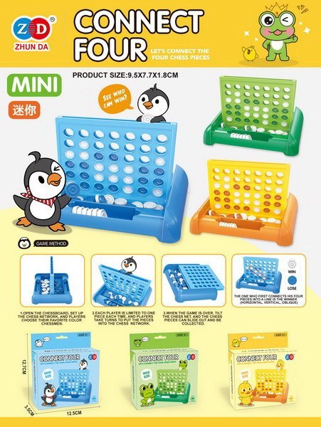 Gra zręcznościowa 4 w Rzędzie dla dzieci od 3-go roku życia. Gra polega na ułożeniu 4 żetonów w takim samym kolorze, na planszy dołączonej do zestawu, w rzędzie poziomym, pionowym lub ukośnym. Oczywiście nasz przeciwnik będzie uniemożliwiał nam wykonanie tego zadania. Kto ułoży wcześniej 4 żetony w rzędzie, wygrywa. Gra rozwija umiejętności logicznego myślenia i planowania. Rozwija wyobraźnię oraz kreatywność. Funkcje gry: - przeznaczona dla dzieci od 3-go roku życia jak i dorosłych, - znakomicie wykonana, - doskonały trening umiejętności i cierpliwości, - ćwiczy koncentrację i logiczne myślenie, - pomaga się zrelaksować, - świetny sposób na wspólne spędzenie czasu, - idealny sposób na nudę lub oderwanie dzieci od komputerów, telefonów, tabletów. |