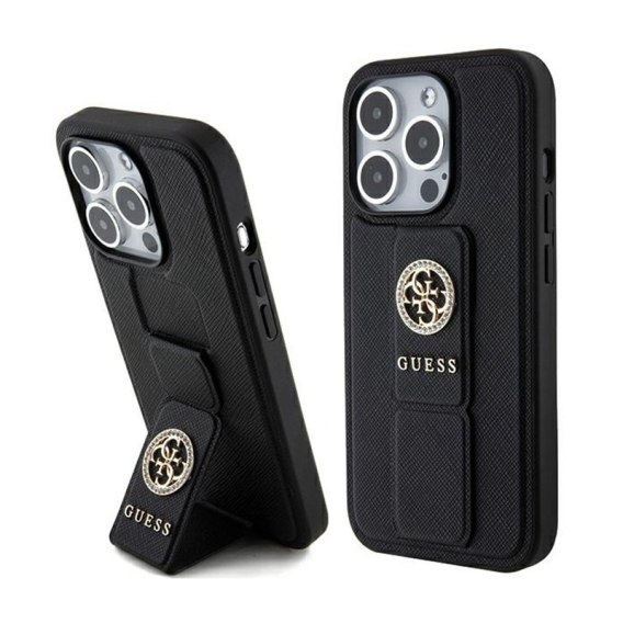 Guess Grip Stand 4G Saffiano Strass Logo - Etui iPhone 15 Pro (czarny)