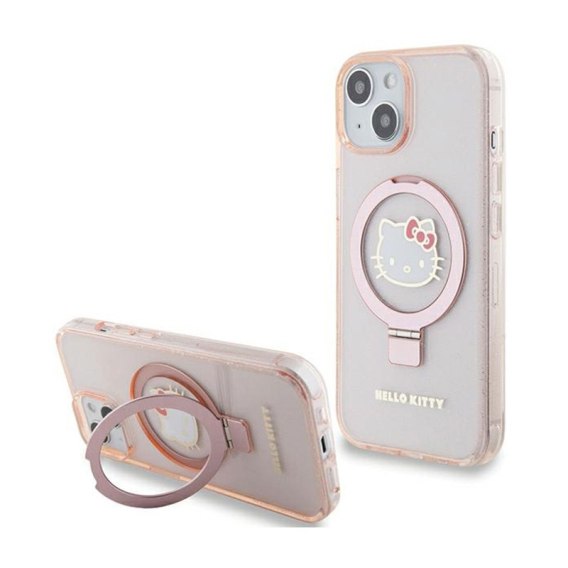 Hello Kitty Ring Stand Glitter Electrop Logo MagSafe - Etui iPhone 15 / 14 / 13 (różowy)