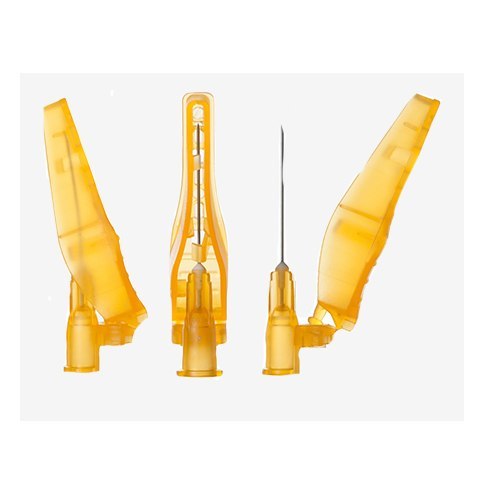 SOL-Millennium Firma oferuje Bezpieczne igły SOL -CARETM, które posiadają mechanizm bezpieczeństwa tzw. jedną ręką Cechy produktu igły dostępne w 7 długościach, od 12,5 mm do 50 mm nasadka pasująca do standardowych strzykawek typu Luer Lock i Slip Tip Każda średnica igły posiada wyrożnienie kolorystyczne ( norma ISO 6009 ) Dzięki szlifowi igły, który skierowany jest ku górze, iniekcja możliwa jest pod możliwie jak najmniejszym kątem Dwa warianty mechanizmu bezpieczenstwa: na twardej powierzchni oraz kciukiem mechanizm bezpieczeństwa - zabezpecza igłę w bezpiecznym ramieniu dźwięczne "kliknięcie" dzięki któremu mamy pewność, że mechanizm bezpieczeństwa zadziałał. Dostępne warianty : Zalecane wskazania zależą od długości i średnicy igły. Użytkownicy są całkowicie odpowiedzialni za prawidłowe zastosowanie. s.c. - podskórnie (sub cutem) i.m. - (łac.) domięśniowo (intramusculare) i.v. - (łac.) dożylnie (intra vene/intravenosus)