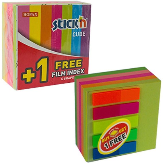Karteczki Stick'n 76x76mm (+ zakładki) neon 5 kolorów (5x80)