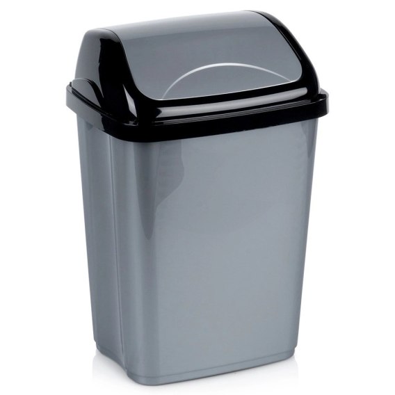 Wykonany z najwyższej jakości tworzywa w szarym, błyszczącym kolorze z czarnym wykończeniem pokrywy. Kosz jest wytrzymały, a zarazem lekki.