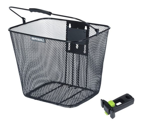 Kosz wykonany z drobno plecionej stali jest odporny na warunki atmosferyczne i zapewnia stabilne przewożenie zakupów lub drobnych przedmiotów.