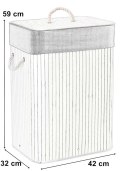 Najpiękniejszy i najtrwalszy, stylowy pojemnik na pranie o pojemności 80 litrów. Wykonany z naturalnego bambusa. Wnętrze wypełnia materiałowa torba. Prosta, budowa, sztywna konstrukcja. Ukrywa nieprzyjemne zapachy. Umożliwia wygodne szybkie i pranie.