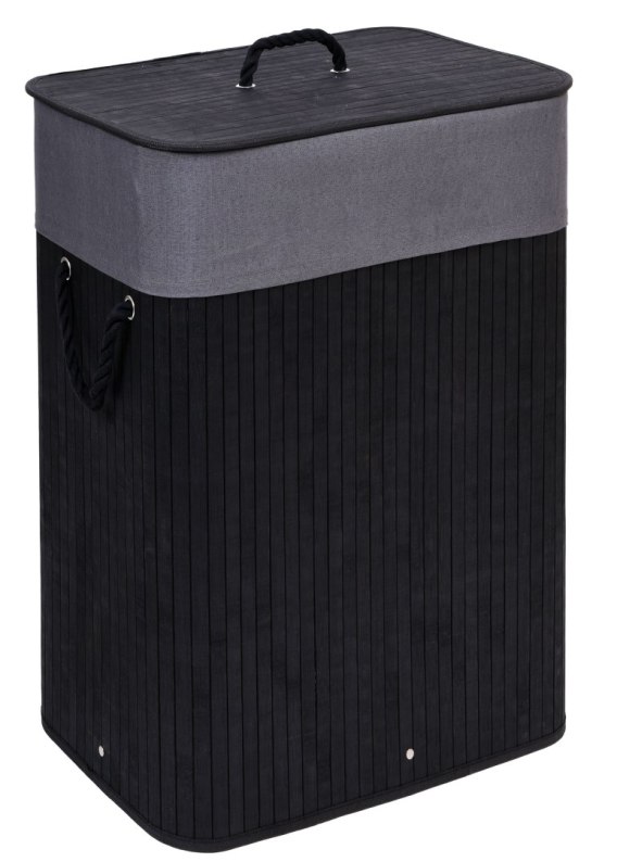 Kosz na pranie bambusowy z pokrywą 80L czarno-szary