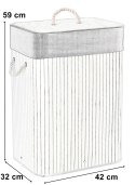 Najpiękniejszy i najtrwalszy, stylowy pojemnik na pranie o pojemności 80 litrów. Wykonany z naturalnego bambusa. Wnętrze wypełnia maeriałowa torba. Prosta, budowa, sztywna konstrukcja. Ukrywa nieprzyjemne zapachy. Umożliwia wygodne szybkie i pranie.