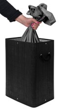 Najtrwalsze pojemniki na odpady o pojemności 80 litrów. Wykonane z naturalnego bambusa. Wnętrze wypełnia materiałowa, miękka torba. Prosta budowa, sztywna konstrukcja. Ukrywa nieprzyjemne zapachy. Umożliwia wygodne szybkie i pranie.