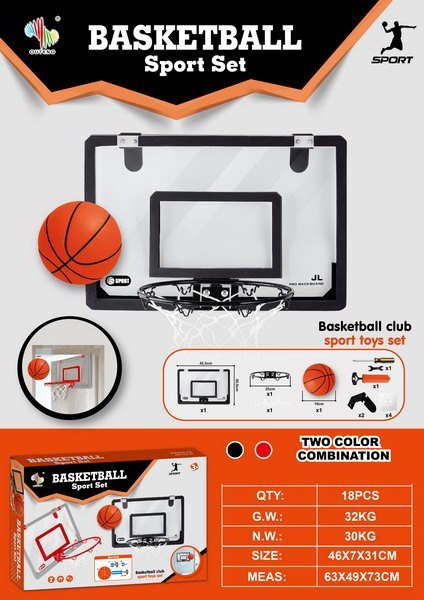 - cały zestaw ok. 45,5 cm x 30,5 cm x 30 cm, - tablica ok. 45,5 cm x 30,5 cm x 1 cm, - średnica kosza ok. 24 cm, - piłka ok. 13 cm średnicy, - pompka ok. 19,5 cm x 5,5 cm, - klucz ok. 7 cm x 2,5 cm, - śrubokręt ok. 9,5 cm, - opakowanie ok. 47 cm x 31 cm x 7 cm. |