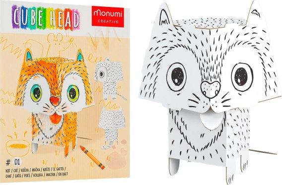 Przestrzenny, mały model zwierzaka z dużą głową do kolorowania. Wykonany z białego kartonu. Precyzyjnie wycięte elementy, łatwe do złożenia bez kleju czy nożyczek. Obrazkowa instrukcja na tyle opakowania.