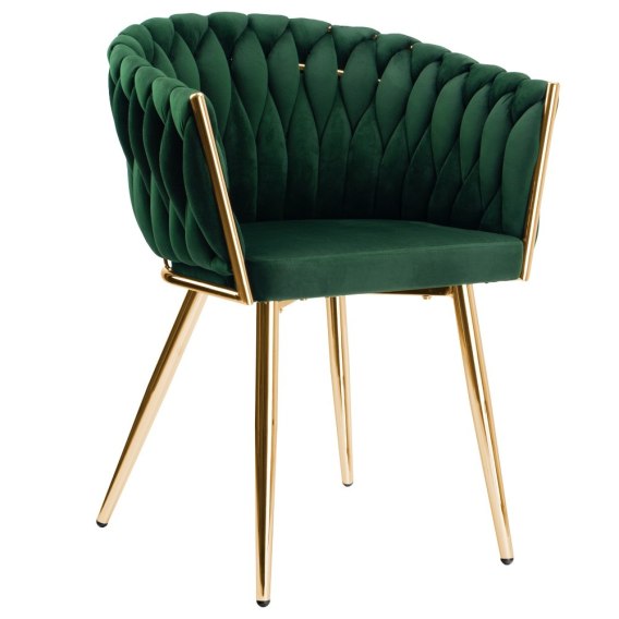 Krzesło welurowe plecione COFTON gold VELVET ciemnozielony