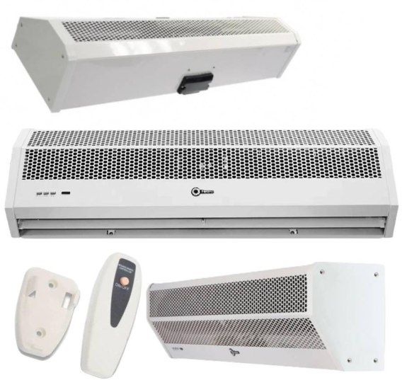 - Bezprzewodowe sterowanie pilotem: dzięki pilotowi istnieje możliwość zdalnego sterowania urządzeniem. Zarówno trybem pracy: zimny / ciepły, jak i prędkością pracy wentylatora kurtyny.