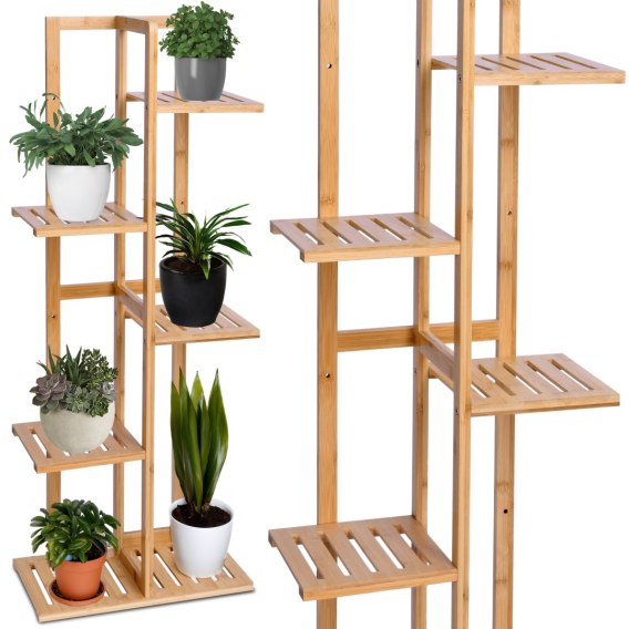 Kwietnik Gutren to eleganckie połączenie estetyki i funkcjonalności, idealne do wyeksponowania roślin. Wykonany z trwałego drewna bambusowego, lakierowany, stanowi doskonałe tło dla roślin, dodając przytulnego uroku każdemu wnętrzu.