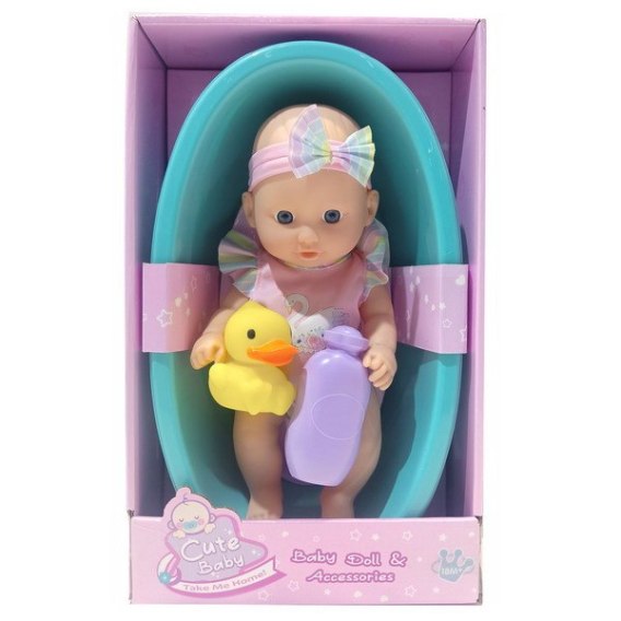 Lalka, niemowlę z wanienką, płynem do kąpieli i kaczuszką dla dzieci od 18-go miesiąca życia. Piękna lalka ubrana jest w kolorowe body i posiada opaskę na głowie. Twoja pociecha będzie mogła ją wykąpać i zaopiekować się nią. Lala posiada ruchomą główkę, rączki i nóżki. Wykonana jest z miękkiego, miłego w dotyku materiału.