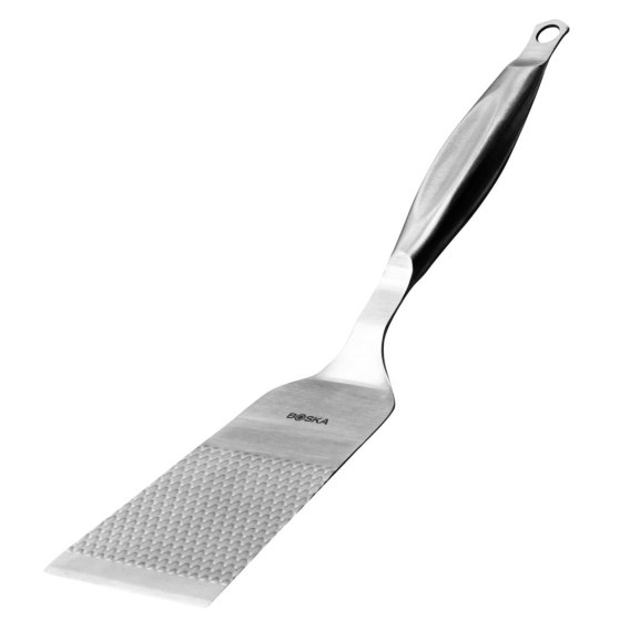 Łopatka do BBQ Monaco+ z hakiem do zawieszenia! Przewracaj cebulę, ziemniaki i hamburgery na grillu jak profesjonalista z łopatką BBQ Flipper Monaco+! Dzięki prostym, ostrym krawędziom łopatka łatwo wśliźnie się pod burgery i warzywa. Krótka rączka zapewnia pełną kontrolę w trakcie pracy, a szeroka powierzchnia łopatki umożliwia jeszcze lepsze dociśnięcie i spłaszczenie grillowanych mięs. Narzędzie wykonano w 100% ze stali nierdzewnej, ma nieprzywierający i antypoślizgowy, diamentowy wzór na powierzchni roboczej co ułatwia obracanie, wkładanie i zdejmowanie potraw z grilla. Łopatka sprawdzi się zarówno na grillu, jak i w kuchni przy przygotowaniu potraw. Dołączony hak w kształcie litery S ułatwia przechowywanie. Łopatkę można myć w zmywarce, ale po zakończeniu cyklu należy ją natychmiast wyjąć i osuszyć jak każde stalowe narzędzie. Materiał: stal nierdzewna. Opakowanie: brak.