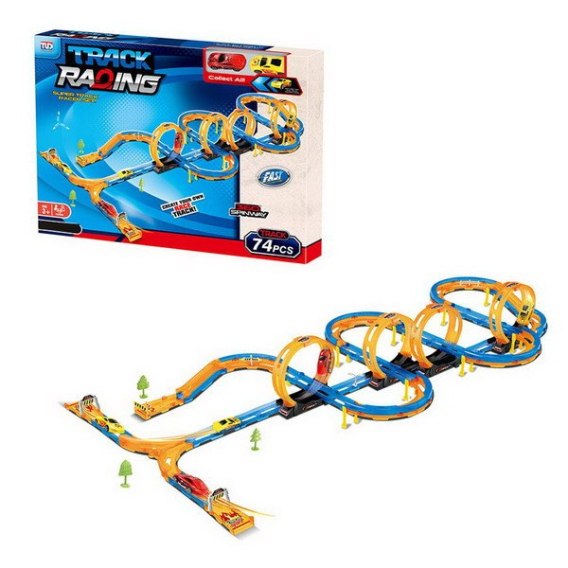 Mega tor wyścigowy z pętlami 360 stopni, ostrymi zakrętami, dla dzieci od 3-go roku życia. Tor wykonano z najlepszej jakości plastiku w żywych kolorach. Na zestaw składa się 74 elementy do samodzielnego montażu. Tor posiada odcinki proste do rozpędzenia pojazdu, 4 pętlę 360 stopni, ostre zakręty i dwa pojazdy. Pojazdy napędzane są napędem pull back. Wystarczy delikatnie nacisnąć pojazd do tyłu, by przejechał tor z pełną mocą. Funkcje toru: - odpowiedni dla dzieci od 3-go roku życia, - wykonany z najlepszej jakości plastiku w żywych kolorach, - cztery pętle 360 stopni, - pojazdy z napędem pull back. |