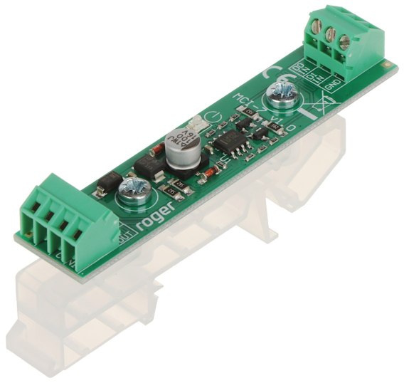 Interfejs MCI-7 jest układem separująco-dopasowującym i znajduje swoje zastosowanie w przypadku występowania niezgodności interfejsów elektrycznych Wiegand pomiędzy urządzeniami ROGER a urządzeniami innych producentów
