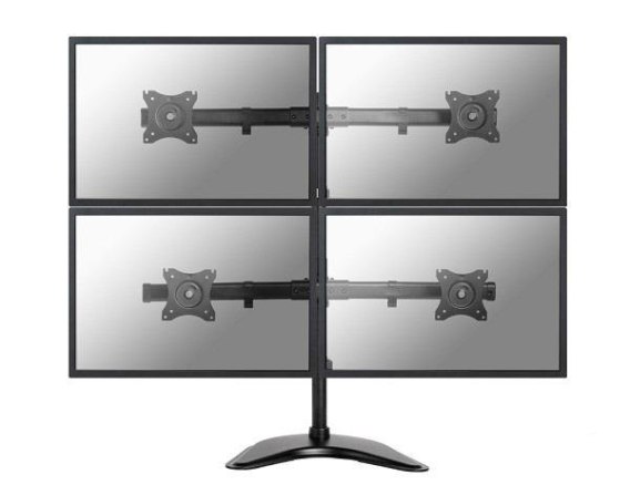 The Neomounts Select desk mount, model NM-D335D4BLACK is a tilt-, swivel and rotatable desk mount for 4 flat screens up to 27?. This mount is a great choice for space saving placement on desks using a desk clamp, desk stand or desk grommet. Neomounts Select's versatile tilt (90°), rotate (360°) and swivel (30°) technology allows the mount to change to any viewing angle to fully benefit from the capabilities of the flat screen. The mount is manually height adjustable from 0 to 80 cen
