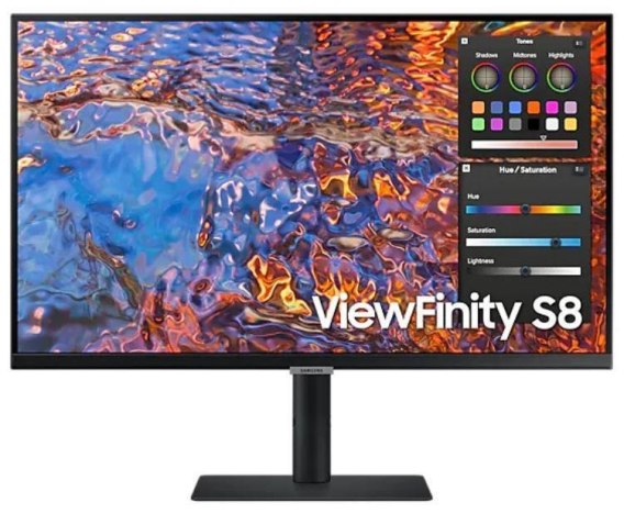 Samsung S80PB. Display diagonal: 81.3 cm (32"), Display resolution: 3840 x 2160 pixels, HD type: 4K Ultra HD, Display technology: LED, Response time: 5 ms, Native aspect ratio: 16:9, Viewing angle, horizontal: 178°, Viewing angle, vertical: 178°. Built-in USB hub. VESA mounting, Height adjustment. Product colour: Black