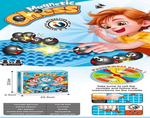 Magnetyczna zręcznościowa gra dla dzieci od ósmego roku życia. Zestaw zawiera 32 kule magnetyczne, koło z wyzwaniami i planszę do gry. Gra ćwiczy zręczność, poprawia zdolności poznawcze, kreatywne myślenie. Gra przeznaczona jest dla dwóch graczy. Osoba przegrana kręci kołem i losuje wyzwanie. Mamy 3 warianty gry. Wariant gry 1: Gracze otrzymują taką samą ilość kulek. Ten gracz, który jako pierwszy umieści wszystkie swoje kulki na planszy, wygrywa. Wariant gry 2: Wygrywa ten gracz, który zbierze jak najwięcej magnetycznych kulek. Wariant 3: Losowe rzucanie kulek na planszę. Dzięki magnetycznemu przyciąganiu kulki będą tworzyć różne niepowtarzalne kształty. |