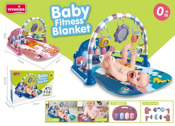 Interaktywna, wielofunkcyjna mata dla najmłodszych od pierwszych dni życia. Zestaw zbudowany jest z wygodnej maty dla maluszka, pałąka z zawieszkami i pianinka. Mata rośnie wraz z dzieckiem. W pierwszym okresie życia, do szóstego miesiąca życia, maluszek może leżeć na wygodnej macie, kopiąc nóżkami w pianinko, oraz przebierać rączkami próbując dosięgnąć zawieszek na pałąku. Między szóstym a dwunastym miesiącem, zestaw będzie niezwykle pomocny przy nauce siadania. Starsze dziecko może grać już samodzielnie na pianinku. Pianinko, można w bardzo łatwy sposób przekształcić w stolik muzyczny za pomocą pokręteł do regulacji, znajdujących się po boku konstrukcji. Możemy pochylać pianinko w kilku pozycjach, lub je odłączyć od zestawu i zabrać w różne miejsca. Dodatkowo pianinko posiada wygodną rączkę do przenoszenia. Zabawka zasilana jest bateriami typu 3 x 1,5 V (brak w zestawie). Na pianinku znajduje się regulacja głośności, włącznik i wyłącznik, 4 klawisze z melodiami, nutami i odgłosami zwierząt. Na pałąku umiejscowiono 4 zawieszki z grzechotkami oraz lusterko. Po bokach podstawy mamy przekładanki z koralikami.